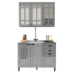 Cozinha Modulada Firenze 2 Peças Aéreo com Vidro Reflecta e Balcão 120cm sem Tampo - Indékes