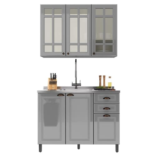 A Cozinha Modulada Firenze 2 Peças Aéreo com Vidro Reflecta e Balcão 120cm é sinônimo de elegância e praticidade. Com estrutura em MDF e MDP e pintura UV, une resistência e beleza em cada detalhe. O armário aéreo se destaca pelo sofisticado vidro reflecta nas portas, que junto ao acabamento em baixo relevo e puxadores pontuais em metal, entrega um visual moderno e requintado. Já o balcão de 120cm conta com portas e gavetas com puxadores concha em metal, dobradiças slow motion e corrediças telescópicas, garantindo suavidade ao uso. A prateleira interna e os pés com regulagem de altura oferecem funcionalidade extra. Importante: o balcão não acompanha tampo nem cuba/pia, ideal para personalização. Uma escolha completa para transformar sua cozinha com estilo.
