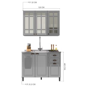 1x Balcão Firenze 120cm: 120 x 90,5 x 51,5 cm (Não acompanha tampo e cuba/pia)