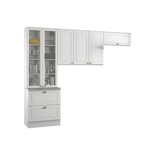 Cristaleira de Cozinha Americana c/ 2 Portas (2 c/Vidro) c/ 2 Gavetas 71,5cm Branco - Henn
