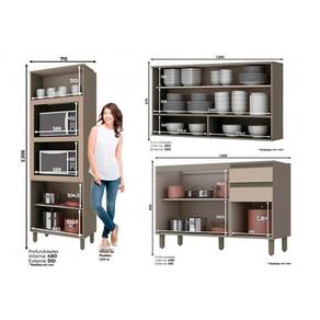 Cozinha Completa Connect 10 Peças (3 Armários + 3 Balcões + 1 Paneleiro + 3 Complementos) C10P01 Duna/Cristal - Henn