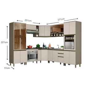 Cozinha Completa Connect 14 Peças (4 Armários + 4 Balcões + 2 Paneleiros + 4 Complementos) C14P06 Duna/Cristal - Henn