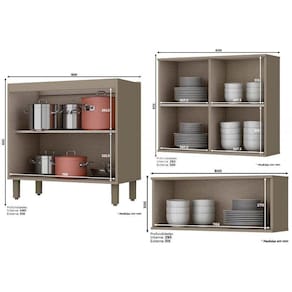 Cozinha Completa Connect 8 Peças (3 Armários + 2 Balcões + 1 Paneleiro + 2 Complementos) C8P04 Duna/Cristal - Henn