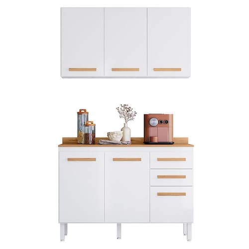 O ambiente é composto por (L x A x P): 1x Armário Aéreo Intenza 120cm: 120 x 63,5 x 28 cm 1x Balcão de Cozinha Intenza 120cm: 120 x 92,5 x 53 cm