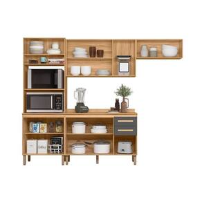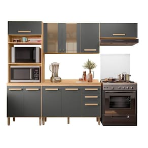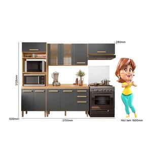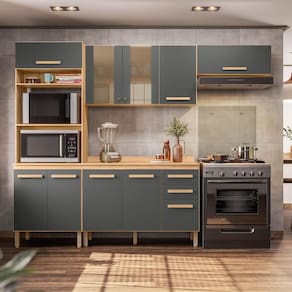 Cozinha Modulada Intenza Madre 4 Peças Freijó/chumbo - Nicioli Freijó/chumbo Cozinha Modulada Intenza Madre 4 Peças - Nicioli A Cozinha Modulada Intenza Madre 4 Peças da Nicioli é perfeita para quem busca um ambiente moderno e funcional. Com estrutura em MDP e pintura UV, oferece resistência e durabilidade. Suas portas possuem dobradiças metálicas para maior segurança, sendo duas delas com vidro reflecta e puxadores em poliestireno, agregando sofisticação ao design. As gavetas contam com corrediças telescópicas, garantindo um deslizamento suave e preciso. O espaço interno é bem distribuído com prateleiras que facilitam a organização, além de um compartimento dedicado para eletrodomésticos. Os puxadores em MDF complementam o visual elegante, enquanto os pés em ABS com regulagem de altura proporcionam estabilidade. Para maior praticidade, acompanha tampo em MDP de 15mm, tornando-se uma excelente opção para compor sua cozinha com estilo e eficiência. ESPECIFICAÇÕES: - Estrutura MDP - Pintura UV - Portas - Dobradiças metálicas - Vidro reflecta em 2 portas - Puxadores em poliestireno nas portas com vidro reflecta - Gavetas - Corrediças telescópicas - Interna com prateleiras - Espaço para eletrodomésticos - Puxadores em MDF - Acompanha tampo em MDP de 15mm - Pés em ABS com regulagem de altura