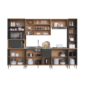 Cozinha modulada Isabelle possui surpreendente espaço interno, design e cores sofisticadas que combinam perfeitamente com qualquer decoração. As gavetas possuem corrediças telescópicas, as portas basculantes contam com dobradiças com amortecimento e pistão à gás para o fechamento suave. Possui prateleiras internas. Com puxadores em alumínio com ponteira ABS e pés modernos com regulagem de altura. Esses itens de qualidade superior conferem durabilidade e maior vida útil ao móvel. Composta de chapa MDP 15mm e 25mm. Os módulos são avulsos (cada peça é independente uma da outra) e podem ser arranjados de diferentes formas, o que permite que, nesse caso, você monte uma cozinha do seu jeito.