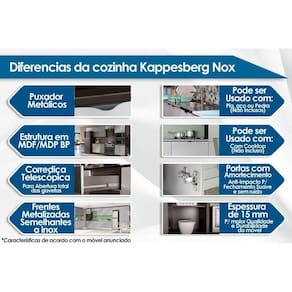 Cozinha Modulada Kappesberg Maxxi 13 Peças (4 Armários+ 4 Balcões + 2 Paneleiros + 3 Complementos) CZ268 Nogal-Kappesberg - Marrom