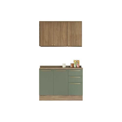 Balcão de Cozinha Botanic M624 c/ 2 Portas e 3 Gavetas s/Tampo 120cm Nogueira/Verde - Kappesberg