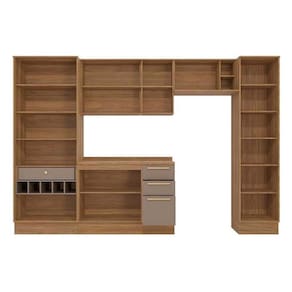 Cozinha Modulada Kappsberg Botanic Botanic 6 Peças (2Aéreos+1Balcão+1Cristaleira+1Paneleiro+1Complemento) M661 Nogueira/Verde Oliva-Kappesberg - Blush