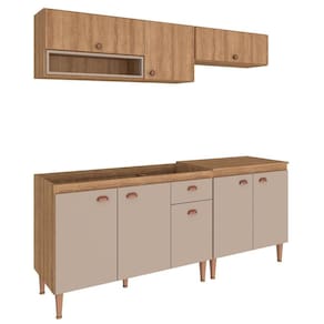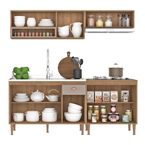 A cozinha modulada Marti é a escolha perfeita para seu lar! Composta por 4 módulos separados que podem ser montados conforme sua necessidade. Produzida em MDP 12mm com frentes 15mm com material de extrema qualidade. Acompanha: Balcão de Pia sem tampo compatível para pia de 120x52cm, Aéreo de pia, Balcão de 80cm e Aéreo de 80cm. O balcão de pia possui 1 gaveta com corrediça telescópica e prateleira interna. O aéreo possui porta basculante com pistão e nicho com moldura. O balcão de 80cm é compatível para cooktop e o aéreo possui porta basculante. Pés e puxadores na cor Bronze. Essa cozinha tem o melhor custo-benefício do mercado! Deixe seu lar mais bonito, moderno e funcional esses maravilhosos móveis! Acabamento da Prateleira: Finish Foil Escala de Brilho da Prateleira: Semi-Brilho Acabamento da Gaveta: Finish Foil Escala de Brilho da Gaveta: Semi-Brilho Material do Puxador da Gaveta: PVC Acabamento da Porta: Finish Foil Escala de Brilho da Porta: Semi-Brilho Material do Puxador da Porta: PVC Acompanha Tampo: Não Altura dos Pés: 17 cm Ambiente Principal: Cozinha Complexidade da Montagem: Baixa: pode ser montado por uma pessoa sozinha Cor: Mel/Cinza Cor do Produto: Mel/Cinza Cor Interna: MEL Escala de Brilho: Semi-Brilho Espessura do Material da Estrutura: 12 mm Gaveta com Chave: Não Itens Inclusos: Móveis, acessórios, manual de montagem Linha ou Coleção: Marti Manual de Montagem e Instalação: https://product-hub-prd.madeiramadeira.com.br/900071/documents/dd66261a-4aec-4d88-9908-cddcad74ef691866781mt06st.pdf Material da Dobradiça/Corrediça da Porta: Metálica Material da Gaveta: MDP Material da Porta: MDP Material da Prateleira: MDP Material do Fundo: MDP Material dos Pés: PVC Medida de cada item (A x L x P): Aéreo 1804 = 28x80x27; Aéreo pia 1801 = 45x120x27; Balcão pia 1800 = 84x120x52; Balcão 1805 = 86x80x52 modular: Sim Necessita Montagem: Sim O Balcão Acompanha Pia: Não Origem do Produto: Nacional Pés Reguláveis: Sim Peso: 69,1 kg Peso Máximo por Gaveta: 2 kg Peso Máximo por Prateleira: 5 kg Possui Pés: 09 Possui Portas: Sim Possui Prateleiras: Sim Possui recorte para Cooktop: Não Possui Rodízio: Não Possui Vidro: Não Recomendações de Uso, Manutenção e Limpeza: Pano levemente úmido Sapatas Niveladoras: Não Sistema de Montagem: parafusos Tamanho Indicado da Pia: 120x52 Tamanho Indicado do Tampo: 120x52 Tipo de Corrediça da Gaveta: Telescópica Tipo de Dobradiça da Porta: Simples Tipo de Puxador da Gaveta: Externo Tipo de Puxador da Porta: Externo