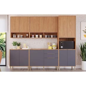 Cozinha Modulada MGM Divina 5 Peças (2Aéreos+2Balcões+1Paneleiro) CZ001 Freijo/Titanium-MGM - Blush