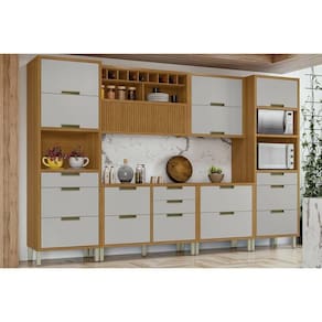 Cozinha Completa Imperatriz 6 Peças (2Aéreos+2Balcões+1Paneleiro) C6P48 Freijo/Off White - Nesher Abaixo segue os produtos que compoem o KIT: - Paneleiro de Cozinha Imperatriz Torre Quente c/ 1 Porta 2 Nichos p/ Forno e 3 Gavetas 70cm Freijo/Off White - Nesher - 1 unidades Dimensões: Alt: 221cm x Larg70cm x Comp/Profund:70cm
