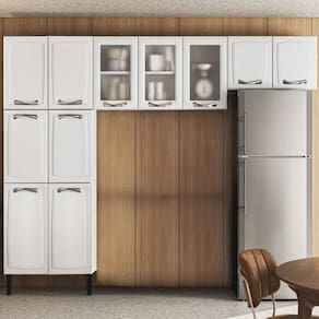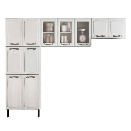 As 11 portas distribuem-se de forma inteligente pelos módulos, oferecendo espaço suficiente para acomodar pratos, panelas, utensílios de cozinha e produtos alimentícios.