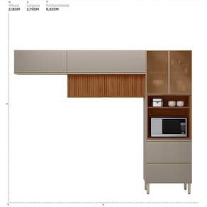 A Cozinha Modulada Proença 3 Peças com Aéreo 120cm Ripado é ideal para quem busca praticidade e elegância no dia a dia. Produzida em MDF com pintura UV, conta com portas, sendo duas com vidro reflecta e uma ripada, dobradiças com amortecimento, pistão a gás, gavetas com corrediças telescópicas e puxadores metálicos. Possui espaço para forno ou micro-ondas de 64 x 45 x 51 cm, pés com regulagem de altura e amplo espaço interno para melhor organização.