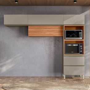 Cozinha Modulada Proença 3 Peças com Torre Quente 2 Fornos - Demartêz A Cozinha Modulada Proença 3 Peças com Torre Quente 2 Fornos é ideal para quem busca praticidade e elegância no dia a dia. Produzida em MDF com pintura UV, conta com portas, dobradiças com amortecimento, pistão a gás, gavetas com corrediças telescópicas e puxadores metálicos. Possui espaço para forno e micro-ondas de 64 x 45 x 51 cm, pés com regulagem de altura e amplo espaço interno para melhor organização.