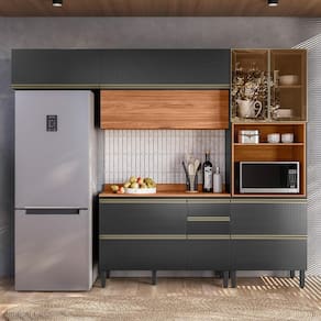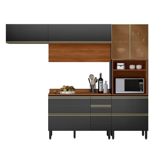 Cozinha Modulada Proença 4 Peças com Paneleiro 1 Forno - Demartêz A Cozinha Modulada Proença 4 Peças com Paneleiro 1 Forno da Demartêz une sofisticação, funcionalidade e resistência em cada detalhe. Produzida em MDF com pintura UV, conta com portas, sendo duas com vidro reflecta, dobradiças com amortecimento, pistão a gás, gavetas com corrediças telescópicas e puxadores metálicos. O balcão de 120cm acompanha divisor de talheres e tampo em MDF, garantindo praticidade no dia a dia. Possui ainda espaço ideal para forno ou micro-ondas (64x45x51cm), pés com regulagem de altura e amplo espaço interno para organização.