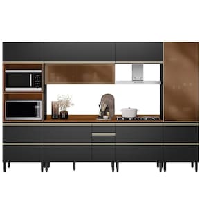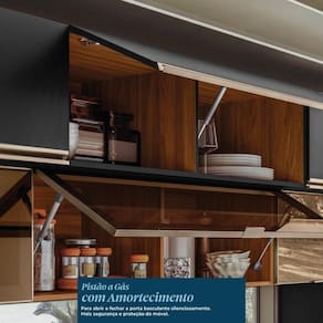 A Cozinha Modulada Proença 6 Peças com Cristaleira e Balcão 80cm une modernidade, praticidade e sofisticação. Produzida em MDF com pintura UV, oferece resistência e durabilidade. Possui portas bem distribuídas, incluindo 2 com vidro, dobradiças com amortecimento, pistão a gás, gavetas com corrediças telescópicas e puxadores metálicos. Conta com nichos para forno e micro-ondas (64 x 45 x 51 cm), divisor de talheres no balcão de 120 cm, tampos em MDF e pés com regulagem de altura. Uma cozinha completa, funcional e elegante para o dia a dia.