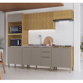 Cozinha Modulada 5 pe?as Ripada sem Tampo Laura Cadorin M?veis, incluindo balc?es,paneleiro e arm?rios a?reos com um total de 3 gavetas e 11 portas, prateleiras com acabamento em pintura UV. As corredi?as s?o telesc?picas e as dobradi?as slowmotion com caneco de 35mm. A estrutura ? feita em MDP 15mm, com p?s de polipropileno e puxadores. A escolha perfeita e elegante para sua cozinha.