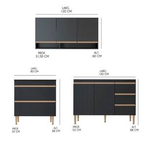 Cozinha Modulada Sabrina 360x202cm com 6 Pecas em MDP Preto Menu Moveis