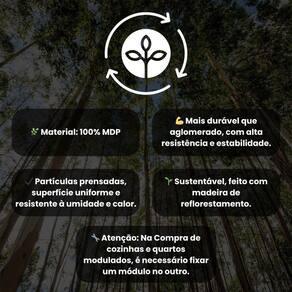 Por se tratar de armarios de cozinha modulados voce pode ajustar os modulos conforme o espaco disponivel e montar diversas modulacoes diferentes para deixar o ambiente muito mais aconchegante. A elegancia fica por conta dos puxadores em perfil e os pes na cor bronze dando um toque unico de sofisticacao.
