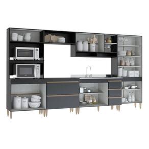 Cozinha Modulada Sabrina 360x202cm com 6 Pecas em MDP Preto Menu Moveis