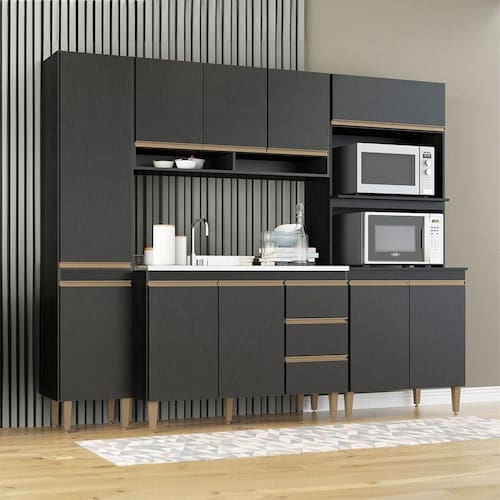 Cozinha Modulada Sabrina Balcão Pia Torre Quente Menu Móveis Preto A Cozinha Modulada Sabrina foi desenvolvida para atender todas as suas necessidades do dia a dia com um design moderno, cheio de atitude, personalidade, funcionalidade, beleza e versatilidade. A Cozinha preta e a tendencia do momento e foi arquitetada com modulos uteis que vao facilitar a sua rotina diaria nos preparos dos alimentos e armazenamento dos utensilios e mantimentos, mantendo sua cozinha sempre organizada.