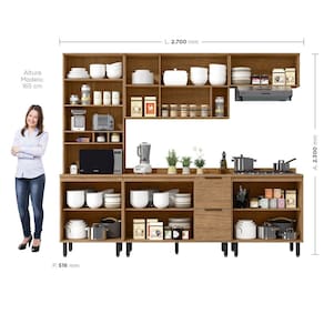 Itens Inclusos: 1 Paneleiro , 1 Aéreo 80cm, 1 Balcão 80cm, 1 Aéreo 1200, 1 Balcão 1200, 1 Tampo 1200, manual, ferragens