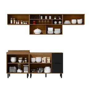 A Cozinha Modulada Toscana em MDF 5 peças com Aereo 1200 Porta de Vidro e Aereo Geladeira da MX Móveis possui nichos ótimos para sua organização. Agora você pode guardar todos os seus utensílios de cozinha para desfrutar um jantar com a família. O acabamento externo e interno, é de total qualidade, utilizando o melhor material, para que seja feito um excelente trabalho, visando também, nosso maior bem, a marromza, com processo ecologicamente corretos. Acabamento da Prateleira: Pintura Texturizada UV Escala de Brilho da Prateleira: Semi-Brilho Acabamento da Gaveta: Pintura Texturizada UV Escala de Brilho da Gaveta: Semi-Brilho Material do Puxador da Gaveta: Alumínio Acabamento da Porta: Pintura Texturizada UV Escala de Brilho da Porta: Semi-Brilho Material do Puxador da Porta: Alumínio Acompanha Tampo: Não Altura dos Pés: 15 Altura Máxima dos Pés: 15.0000 Ambiente Principal: Cozinha codigo_ean: 7909903489079 Complexidade da Montagem: Média: pode ser montado por mais de uma pessoa e/ou necessite de maior conhecimento para montagem Cor: Freijó/Nero Cor do Produto: Freijó/Nero Cor Interna: Freijó Escala de Brilho: Semi-Brilho Espessura do Material da Estrutura: 15 mm Gaveta com Chave: Não Itens Inclusos: 1 Aéreo, 2 Aéreo Basculante, 1 Balcão, 1 Balcão Pia, Kit Ferragens e Manual de Montagem Linha ou Coleção: Toscana Manual de Montagem e Instalação: https://product-hub-prd.madeiramadeira.com.br/875259/documents/6b053d92-d570-47ea-87e2-98cc76c045121669695sku875259.pdf Material da Dobradiça/Corrediça da Porta: Aço Material da Gaveta: MDF Material da Porta: MDF Material da Prateleira: MDF Material dos Pés: ABS Medida de cada item (A x L x P): Aereo 74x120x29cm; Aereo 800 Basculante 37x80x29cm; Aereo 800 Basculante 37x80x29cm;Balcão 91,7x80x51,6cm; Balcão 1200 89,5x120x516cm modular: Sim Necessita Montagem: Sim O Balcão Acompanha Pia: Não Origem do Produto: Nacional Pés Reguláveis: Sim Peso: 117,54 kg Peso Máximo por Gaveta: 3 kg Peso Máximo por Prateleira: 5 kg Possui Pés: 09 Possui Portas: Sim Possui Prateleiras: Sim Possui recorte para Cooktop: Não Possui Rodízio: Não Possui Vidro: Sim Produto Montado: Sim Recomendações de Uso, Manutenção e Limpeza: Para manter seu móvel novo por muito mais tempo, evite locais úmidos, mantenha-o distante de líquidos e de fontes de calor. Evite a exposição prolongada ao sol. Para limpá-lo com segurança utilize uma flanela seca sem produtos abrasivos e nem lustra móveis. Sapatas Niveladoras: Não Sistema de Montagem: Parafusos e Cavilhas Tamanho Indicado da Pia: 120x51,6cm Tamanho Indicado do Tampo: 120x51,6cm Tamanho Indicado do Tampo ou Pia: 120x56,1cm Tipo de Corrediça da Gaveta: Metálica Telescópica Tipo de Dobradiça da Porta: Soft close Tipo de Puxador da Gaveta: Externo Tipo de Puxador da Porta: Externo