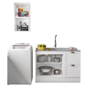 O ambiente é composto por (L x A x P): 1x Armário Aéreo 1 Porta: 41 x 76 x 31 cm 1x Balcão 2 Portas e 2 Gavetas 120cm sem Tampo: 120 x 84 x 50 cm (Não acompanha tampo em MDP e pia/cuba)