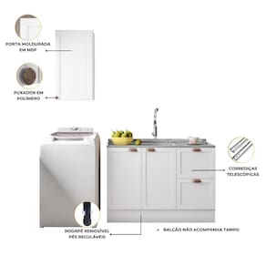 ESPECIFICAÇÕES: Estrutura em MDP Perffect Touch Pintura UV 3 Portas Dobradiças metálicas 2 Gavetas Corrediças telescópicas Prateleira interna Puxadores retrô em polímero Portas almofadadas/molduradas em MDF Pés em PVC reguláveis ao piso de 14,5 cm Rodapés removíveis com presilhas modelo click Balcão 120cm não acompanha tampo MDP e pia/cuba Amplo espaço interno