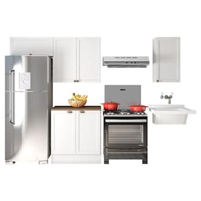 O ambiente é composto por (L x A x P): 1x Armário Aéreo Geladeira 80cm: 80 x 34 x 31 cm 1x Armário Aéreo 2 Portas 80cm: 80 x 76 x 31 cm 1x Armário Aéreo 1 Porta: 41 x 76 x 31 cm 1x Balcão 2 Portas 80cm com Tampo MDP: 80 x 86 x 50 cm (Acompanha tampo em MDP)