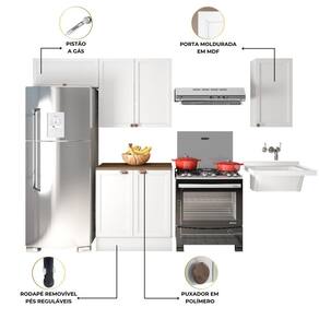 ESPECIFICAÇÕES: Estrutura em MDP Perffect Touch Pintura UV 6 Portas sendo 1 basculante Dobradiças metálicas Prateleira interna Puxadores retrô em polímero Portas almofadadas/molduradas em MDF Pés em PVC reguláveis ao piso de 14,5 cm Rodapés removíveis com presilhas modelo click Balcão 80cm acompanha tampo MDP 27mm de espessura Amplo espaço interno