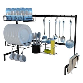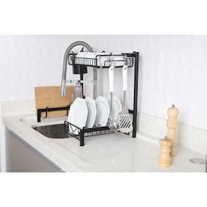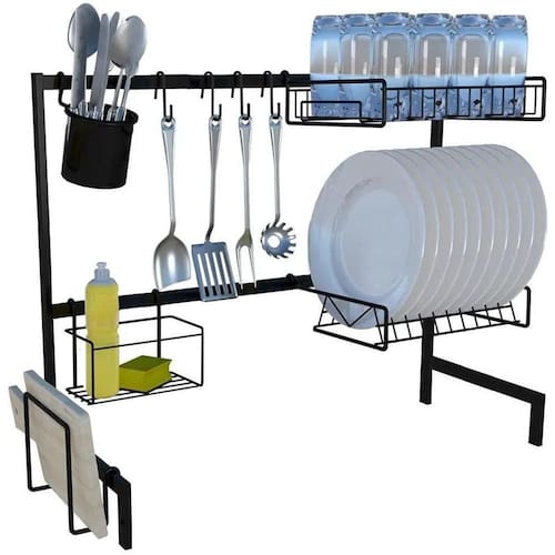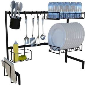 Características: Fabricado 100% em aço. Ideal para facilitar sua organização na bancada da cozinha. Auto-sustentação, com auxílio de pés para pôr na bancada da pia. Extensor de altura, para ajustar de 46cm à 55cm. Suporta até 20kg.