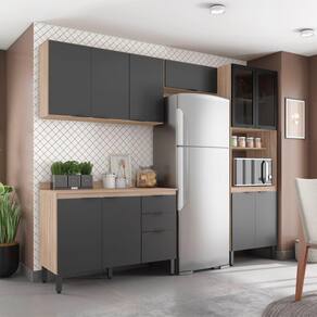 Cozinha Modular Com 4 Peças Firenze Composição 02 Avena Grafito Demóbile