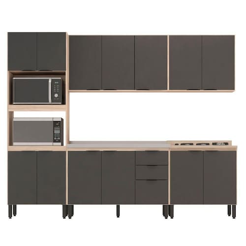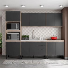 para você criar a composição que melhor atender as necessidade da sua cozinha e visual sofisticado para valorizar ainda mais o ambiente. A sugestão de composição FHR001 é composta por paneleiro com espaço para instalar forno microondas e forno elétrico, armários aéreos com prateleiras internas de diferentes dimensões, balcão com diferentes espaços de armazenamento para instalar a pia de cozinha e também, balcão para instalar fogão cooktop ou para mais espaço de apoio e armazenamento. Incrível, não é mesmo? Viva essa experiência. Você vai amar.