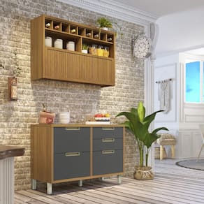 A cozinha completa Imperatriz é ideal e trará conforto e facilidade para você, ao mesmo tempo que deixará o ambiente muito mais aconchegante e prático. Feita em MDF nas cores Freijó com Grafite. Possui 1 Balcão e 1 Armário Aéreo. Assim o conjunto oferece tudo que sua cozinha precisa, em menos espaço e muito mais elegância!