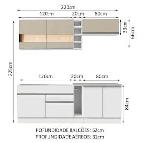 - Profundidade: Balcões e paneleiro 52cm | Aéreos 31cm