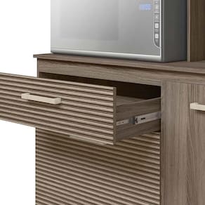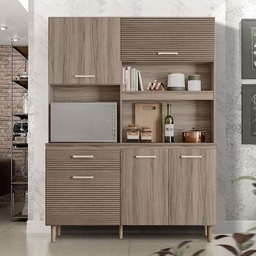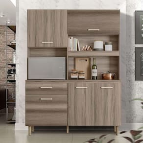 - O móvel possui um espaço designado para o micro-ondas, facilitando o uso e a organização na cozinha