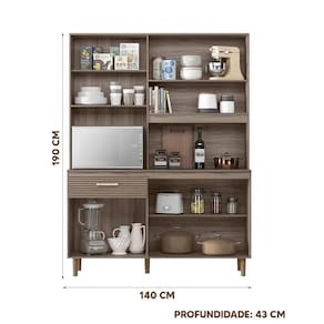 Dimensões do Produto: Largura 140 cm; Profundidade 43 cm; Altura 190 cm.