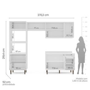 A Cozinha Pérola Completa possui 4 peças com altura de 219,4 cm largura de 270,2 cm e profundidade de balcão de 52 cm. Com portas e gavetas em MDF usinadas em baixo relevo, possui estilo Americano e design contemporâneo, funcional e prático para seu dia a dia. Seus puxadores dos módulos inferior são no formato de concha. E na parte superior são modelo pontual, ambos na cor cobre. Possui dobradiças 3,5cm Slide On (sistema de amortecimento anti batida) e na porta basculante possui além das dobradiças Slide On pistão para proporcionar uma maior abertura. Possui tampo de 2,5cm no balcão. Acabamento da Prateleira: Pintura Escala de Brilho da Prateleira: Fosco Acabamento da Gaveta: Pintura Escala de Brilho da Gaveta: Fosco Material do Puxador da Gaveta: Plástico Acabamento da Porta: Pintura Escala de Brilho da Porta: Fosco Material do Puxador da Porta: Plástico Acabamento dos Pés: Poliéster Acompanha Rodapé Decorativo: Não Acompanha Tampo: Não Altura dos Pés: 17 cm Altura Máxima dos Pés: 17.0000 Ambiente Principal: Cozinha Balcão Suporta Pia: Sim codigo_ean: 7909903976494 Complexidade da Montagem: Média: pode ser montado por mais de uma pessoa e/ou necessite de maior conhecimento para montagem Cor: Branco/Cinza Cor do Produto: Branco/Cinza Cor Flex: Não Cor Interna: Branco Escala de Brilho: Fosco Espessura do Material da Estrutura: 15 mm Gaveta com Chave: Não Itens Inclusos: 1 móvel desmontado, kit de ferragens, termo de garantia e manual de montagem. Linha ou Coleção: Pérola Manual de Montagem e Instalação: https://product-hub-prd.madeiramadeira.com.br/961207/documents/f66ed996-e4e4-45f7-a7c0-f39b80ae937182302316493317254577324703.pdf Marca: Yescasa Material da Dobradiça/Corrediça da Porta: Metálica Material da Gaveta: MDF Material da Porta: MDF Material da Prateleira: MDP Material do Fundo: HDP Material dos Pés: Plástico Medida de cada item (A x L x P): Torre Quente: 219,4 x 70,2 x 52 Balcão: 84 x 120 x 50,5 Aéreo: 67 x 120 x 36,5 Basculante: 33,5 x 80 x 36,5 Montagem Flex: Não Necessita Montagem: Sim O Balcão Acompanha Pia: Não Origem do Produto: Nacional Pés Reguláveis: Sim Peso: 125,2 kg Peso Máximo por Gaveta: 5 kg Peso Máximo por Prateleira: 10 kg Possui Pés: 10 Possui Portas: Sim Possui Prateleiras: Sim Possui recorte para Cooktop: Não Possui Rodízio: Não Possui Vidro: Não Produto Montado: Sim Recomendações de Uso, Manutenção e Limpeza: Utilize um pano macio umedecido com água e sabão neutro, seguido de pano seco. Não utilize produtos químicos ou abrasivos para limpeza, pois estes danificam o revestimento do móvel. Sapatas Niveladoras: Sim Sistema de Montagem: Cavilha, parafuso, minifix e prego Suporta Até (kg): 10 kg Tamanho Indicado da Pia: L: 120 x P: 52 cm Tamanho Indicado do Tampo: L: 120 x P: 52 cm Tipo de Corrediça da Gaveta: Metálica Telescópica Tipo de Dobradiça da Porta: Soft close Tipo de Puxador da Gaveta: Externo Tipo de Puxador da Porta: Externo