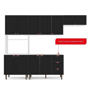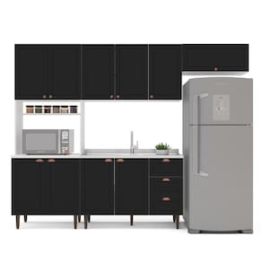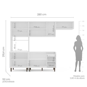 A Cozinha Pérola Completa possui 4 peças com altura de 219,4 cm largura de 280 cm e profundidade de balcão de 52 cm. Com portas e gavetas em MDF usinadas em baixo relevo, possui estilo Americano e design contemporâneo, funcional e prático para seu dia a dia. Seus puxadores dos módulos inferior são no formato de concha. E na parte superior são modelo pontual, ambos na cor cobre. Possui dobradiças 3,5cm Slide On (sistema de amortecimento anti batida) e na porta basculante possui além das dobradiças Slide On pistão para proporcionar uma maior abertura. Acabamento da Prateleira: Pintura Escala de Brilho da Prateleira: Fosco Acabamento da Gaveta: Pintura Escala de Brilho da Gaveta: Fosco Material do Puxador da Gaveta: Plástico Acabamento da Porta: Pintura Escala de Brilho da Porta: Fosco Material do Puxador da Porta: Plástico Acabamento dos Pés: Poliéster Acompanha Rodapé Decorativo: Não Acompanha Tampo: Não Altura dos Pés: 17 cm Altura Máxima dos Pés: 17.0000 Ambiente Principal: Cozinha Balcão Suporta Pia: Sim codigo_ean: 7900288008954 Complexidade da Montagem: Média: pode ser montado por mais de uma pessoa e/ou necessite de maior conhecimento para montagem Cor: Branco/Preto Cor do Produto: Branco/Preto Cor Flex: não Cor Interna: Branco Escala de Brilho: Fosco Espessura do Material da Estrutura: 15 mm Gaveta com Chave: Não Itens Inclusos: 1 móvel desmontado, kit de ferragens, termo de garantia e manual de montagem. Linha ou Coleção: Pérola Manual de Montagem e Instalação: https://product-hub-prd.madeiramadeira.com.br/968316/documents/6389f287-191c-447b-8759-c587583d3aa42523604493317303128082304.pdf Marca: Yescasa Material da Dobradiça/Corrediça da Porta: Metálica Material da Gaveta: MDF Material da Porta: MDF Material da Prateleira: MDP Material dos Pés: Plástico Medida de cada item (A x L x P): Paneleiro/Torre Quente: 219,4 x 80 x 52 Balcão: 84 x 120 x 50,5 Aéreo: 67 x 120 x 36,5 Basculante: 33,5 x 80 x 36,5 modular: Sim Montagem Flex: sim Necessita Montagem: Sim O Balcão Acompanha Pia: Não Origem do Produto: Nacional Pés Reguláveis: Sim Peso: 121,79 kg Peso Máximo por Gaveta: 5 kg Peso Máximo por Prateleira: 10 kg Possui Pés: 09 Possui Portas: Sim Possui Prateleiras: Sim Possui recorte para Cooktop: Não Possui Rodízio: Não Possui Vidro: Não Produto Montado: Sim Recomendações de Uso, Manutenção e Limpeza: Utilize um pano macio umedecido com água e sabão neutro, seguido de pano seco. Não utilize produtos químicos ou abrasivos para limpeza, pois estes danificam o revestimento do móvel. Sapatas Niveladoras: Sim Sistema de Montagem: Cavilha, parafuso, minifix e prego Suporta Até (kg): 10 kg Tamanho Indicado da Pia: L: 120 x P: 52 cm Tamanho Indicado do Tampo: L: 120 x P: 52 cm Tipo de Corrediça da Gaveta: Metálica Telescópica Tipo de Dobradiça da Porta: Soft close Tipo de Puxador da Gaveta: Externo Tipo de Puxador da Porta: Externo