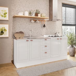 Cozinha Pérola com Rodapé 2 Peças Balcão 2 Gavetas 3 Portas e Balcão 2 Portas Yescasa Branco
