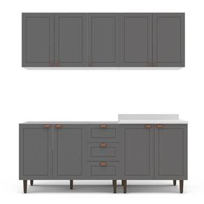 Cozinha Pérola com Rodapé 4 Peças Aéreos com 5 Portas, Balcão 2 Gavetas 3 Portas e Balcão 2 Portas Y Branco/Cinza
