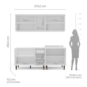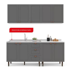 Medida de cada item (A x L x P): Balcão 2 portas 3 gavetas: 84 x 120 x 50,5 Balcão 2 portas: 93,7 x 80,2 x 52,5 Aéreo 3 portas: 67 x 120 x 36,5 Aéreo 2 portas: 67 x 80 x 36,5