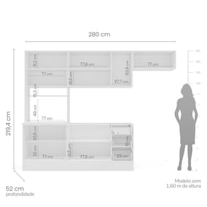 A Cozinha Pérola Completa possui 4 peças com altura de 219,4 cm largura de 280 cm e profundidade de balcão de 52 cm. Com portas e gavetas em MDF usinadas em baixo relevo, possui estilo Americano e design contemporâneo, funcional e prático para seu dia a dia. Seus puxadores dos módulos inferior são no formato de concha. E na parte superior são modelo pontual, ambos na cor cobre. Possui dobradiças 35mm Slide On (sistema de amortecimento anti batida) e na porta basculante possui além das dobradiças Slide On pistão para proporcionar uma maior abertura. Acompanha rodapé decorativo para fechamento.