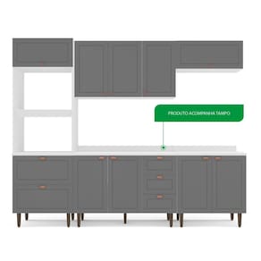 Medida de cada item (A x L x P): Torre Quente: 219,4 x 70,2 x 52 Balcão: 84 x 120 x 50,5 Aéreo: 67 x 120 x 36,5 Basculante: 33,5 x 80 x 36,5 Balcão: 84 x 80 x 50,5