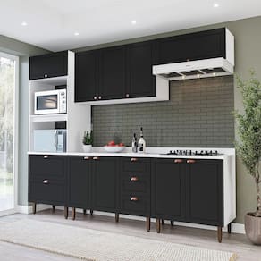 Medida de cada item (A x L x P): Torre Quente: 219,4 x 70,2 x 52 Balcão: 84 x 120 x 50,5 Aéreo: 67 x 120 x 36,5 Basculante: 33,5 x 80 x 36,5 Balcão: 84 x 80 x 50,5