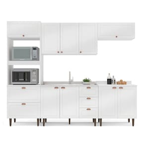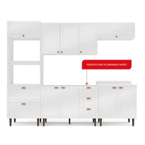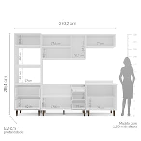 Medida de cada item (A x L x P): Torre Quente: 219,4 x 70,2 x 52 Balcão: 84 x 120 x 50,5 Aéreo: 67 x 120 x 36,5 Basculante: 33,5 x 80 x 36,5 Balcão: 84 x 80 x 50,5