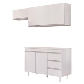 Que tal a Cozinha Planejada Lux 03 Peças MDF com Balcão Gabinete 120cm 03 Gavetas?