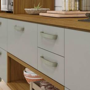 Marca Nesher Modelo Princesa Material Principal MDF Tonalidade do Produto Off White, Freijó Quantidade de Nichos 3 Nichos Nicho Microondas Quantidade de Prateleiras 6 Prateleiras Prateleiras MDF Quantidade de Gavetas 5 Gavetas Quantidade de Portas 5 Portas Portas Basculante, Giro Pistão À Gás Simples Características Gerais Adaptação para pia Material do Puxadores Embutido, ABS Tipo de Dobradiça / Corrediça Dobradiça Slow Motion com Freio Anti-Impacto, Corrediça Telescópica com Três Estágios e Abertura Total Pés Regulável, Palito, Produto Suspenso Acabamento Fita de acabamento e proteção dos topos 100% em polipropileno, assegurando maior proteção contra umidade e melhor acabamento, Caixa com impressão de alta qualidade e durabilidade no padrão madeira. Eletrônicos Itens Incluso Manual de Montagem, Balcão, Armário Suspenso, Paneleiro, Divisória para Talheres, Caixa Organizadora, Kit Ferragens Necessita Montagem Sim Peso do Produto Unitário 152,6 kg Dimensão do Produto Unitário 264 x 221 x 52 cm Quantidade de Volume 4 Volumes Dimensão da Embalagem Unitário 1Vol: 45 x 7 x 211 cm | 2Vol: 66 x 12 x 74 cm | 3Vol: 42 x 10 x 206 cm | 4Vol: 54 x 19 x 126 cm Garantia do Fabricante 3 Meses Informações Importantes A CONFORTSUL não oferece serviços de montagem e/ou instalação, Nós não nos responsabilizamos por transporte de produtos, caso não caibam em elevadores, acima de três lances de escada e não cabendo na passagem das escadas, por içamentos ou desmontagens de produtos, Verifique as dimensões do produto e certifique-se que o percurso que ele fará até o local de uso permite sua passagem, Verifique o tamanho de elevadores e portas para transporte do produto Informações Gerais Imagens do produto são meramente ilustrativas, Produto segue desmontado, montagem por conta do comprador, As cores dos objetos podem sofrer alterações devido a luminosidade, configurações do monitor e até mesmo a percepção do usuário, Todos os objetos decorativos não acompanham o produto Limpeza e Cuidados Para uma limpeza eficaz use um pano limpo e levemente umedecido em água. Logo após, seque a superfície com um pano seco e macio, Em grandes superfícies limpe pequenas áreas de cada vez, trabalhando de baixo para cima, Lembre-se: nunca utilize produtos de limpeza abrasivos como esponja de aço, saponáceos ou produtos à base de solventes, Não é recomendável o uso de lustra móveis que possam engordurar a superfície, Não encoste o móvel diretamente na parede, mantenha uma distância de pelo menos 5cm, pois deixando esse espaço, haverá circulação de ar evitando o aparecimento de mofo, que é causado pela humidade e falta de circulação do ar, Não exponha o móvel à umidade extrema, à luz solar direta ou a qualquer outra forma de calor. Móveis expostos ao sol podem apresentar manchas ou deformações de suas partes